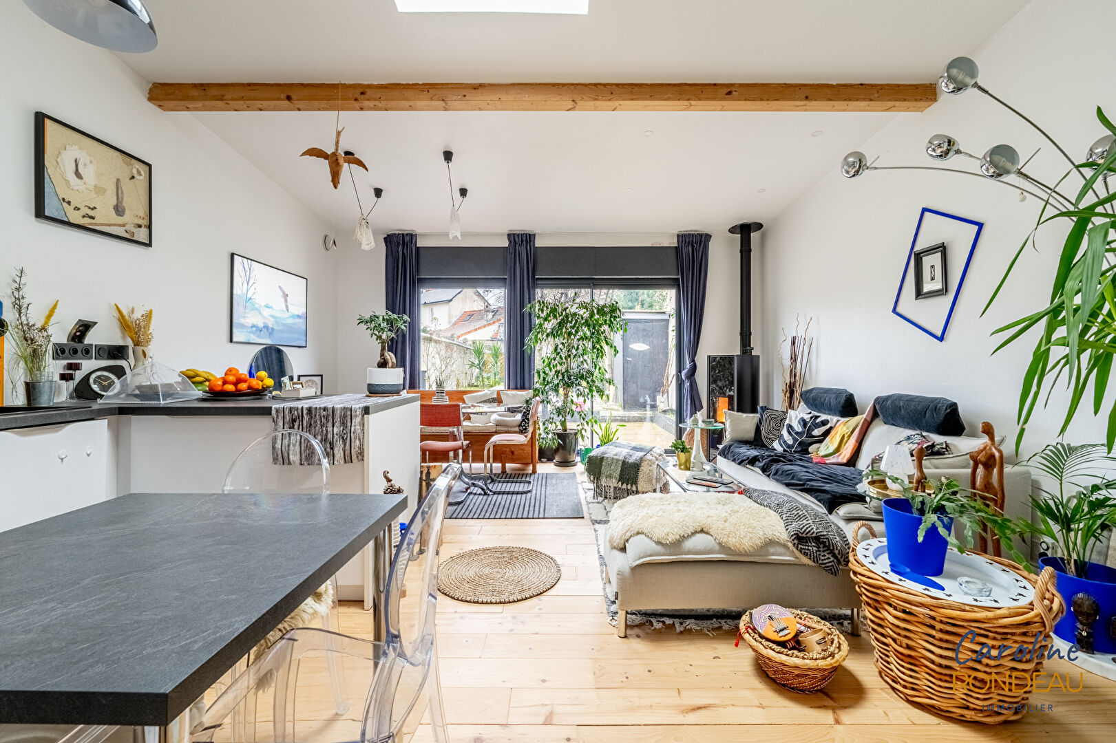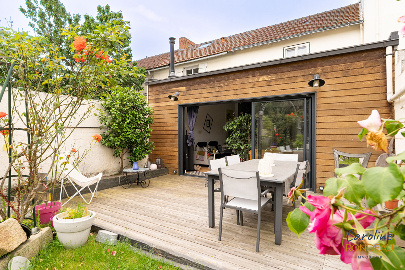 Caroline Rondeau Immobilier vous présente, a vendre Nantes Est , Beaujoire, petit loft, bd Professeur Auvigné (au calme), proche de la porte de Carquefou et de la Beaujoire. Cette maison « loft » entièrement rénovée est une jolie surprise. Sur une petite copropriété de 2 lots seulement. La maison s’organise vers le jardin de plain-pied. Une entrée avec un espace bureau, une grande salle de bains, une buanderie, un wc. La grande pièce de vie avec poele a granules, la cuisine ouverte A/E mène a une terrasse bois et un jardin clos et arboré. A l’étage de la maison un palier dessert 2 chambres dont une avec dressing, salle d’eau réçente avec wc. combles a aménager pour créer une 3ème chambre (possible également en rdc en réaménageant l’espace bureau actuellement ouvert). Dans le jardin, un petit cabanon et un garage en dépendance et accessible par une rue derrière la maison. Un bien unique sans travaux, très bon DPE , faibles charges (2 lots uniquement de copropriété), et situé aux pieds de toutes les commodités, nouveau quartier, accès transports « Ranzay », ligne 1 et accès rapide périphérique porte de Carquefou . Plus d’informations ou venir la visiter caroline 06 84 07 52 63. (4.80 % honoraires TTC à la charge de l’acquéreur.)